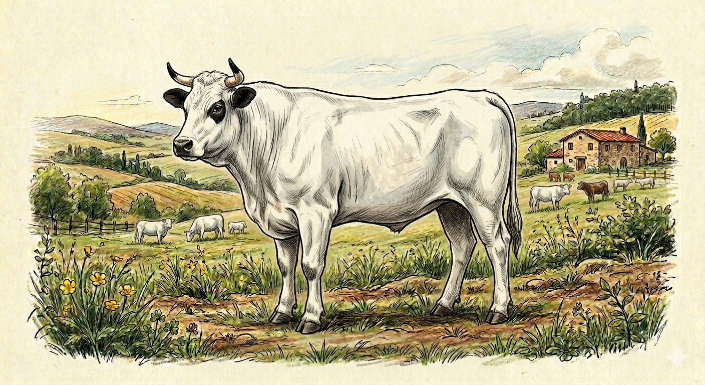 La carne proviene da Chianina certificata I.G.P., una delle razze bovine più antiche e nobili d’Italia, allevata in Toscana secondo disciplinare.